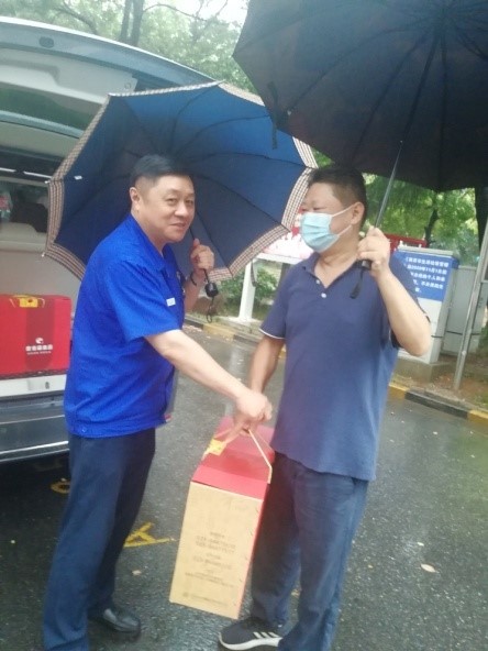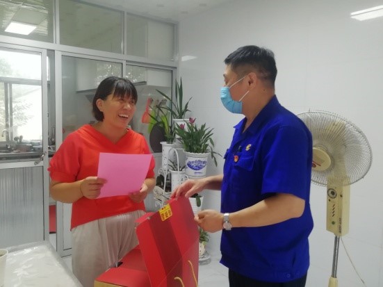 8月10日下午,公司工会主席兼政工部部长邓戈冒雨前往公司派出的抗疫志愿者部分家庭,给他们送去新工集团的慰问品和慰问信,也带去了公司党委的慰问和谢意,对他们给予子女参加抗疫工作的支持表示感谢。