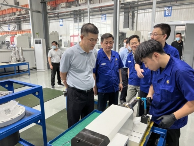 陶海龙总经理一行首先参观了公司装配部、高端事业部,尹仁华董事长向客人们介绍了南二机床历史沿革、公司运营现状、未来发展愿景以及主要产品核心部件的生产装配等情况。陶海龙总经理仔细考察了南二机床磨齿机、珩齿机、车齿机等高端齿轮机床生产装配流程,并不时询问一些技术和生产关键性问题,尹仁华等领导逐一进行解答。